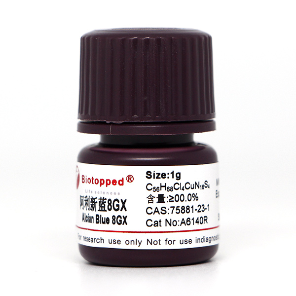 用途:本品仅供科研,不得用于其它用途。(以下用途仅供参考)电泳及生物染色,用于检测糖蛋白。生物染色用在Mowry's pH 2.5方法,Scott's pH 5.7 方法,Kreyberg's 方法检测角质和粘液