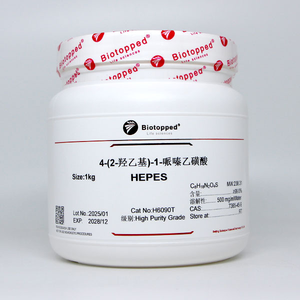 生物缓冲试剂,可用于配制蛋白提取缓冲液、细胞培养用缓冲液等。有效缓冲范围为pH6.8-8.2。备注:产品信息可能会有优化升级。请以实际标签信息为准。注意: