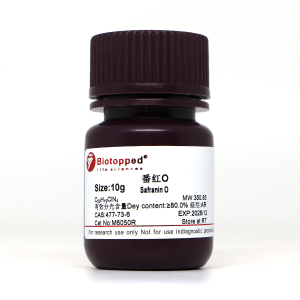 Solubility 易溶于水成红色溶液,溶于乙醇红色带黄色荧光。对盐酸为蓝红色溶液,过多则呈紫色,大量过多则转为蓝色,对氢氧化钠则生成棕红色沉淀。对硫酸则为绿色溶液,稀释时先变成蓝色,渐变成紫色,最后变成红色。最大吸收波长530nm。有刺激性,商品中常混杂有甲基藏红T