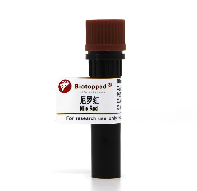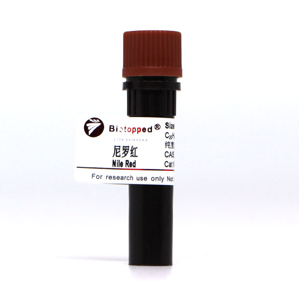 尼罗红( Nile Red ),是一种脂质探针( lipophilic probe ),能用于定位和定量细胞内的脂质,特别是中性脂滴。作为一种环境敏感型荧光探针,尼罗红在水和其他极性溶剂中基本无荧光,但在非极性环境中发生显著的荧光增强和吸光/发射光谱蓝移(Ex/Em-552/636 nm,甲醇溶液)可用荧光显微镜或流式细胞仪检测。流式细胞术对尼罗红(单一染色)和尼罗红/抗CD3单克隆抗体(双标染色)的检测方法可用来监测外周血白细胞和淋巴细胞磷脂沉积(PLD )。