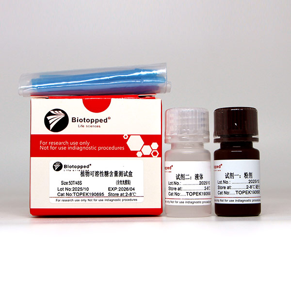 蒽酮比色法。可用于可溶性单糖、寡糖和多糖的含量测定,具有灵敏度高﹑简便快捷﹑适用于微量样品的测定等优点。