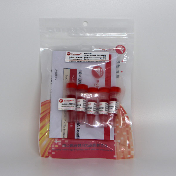 本产品是10倍浓缩的DNA上样缓冲液,用于DNA凝胶电泳,能促使DNA样品沉入凝胶加样孔中,使用时需稀释至 1×使用。10×DNA Loading Buffer主要成份为甘油,EDTA,溴酚蓝和二甲苯青等。溴酚蓝和二甲苯青用作电泳时的指示剂,可指示电泳进程。
