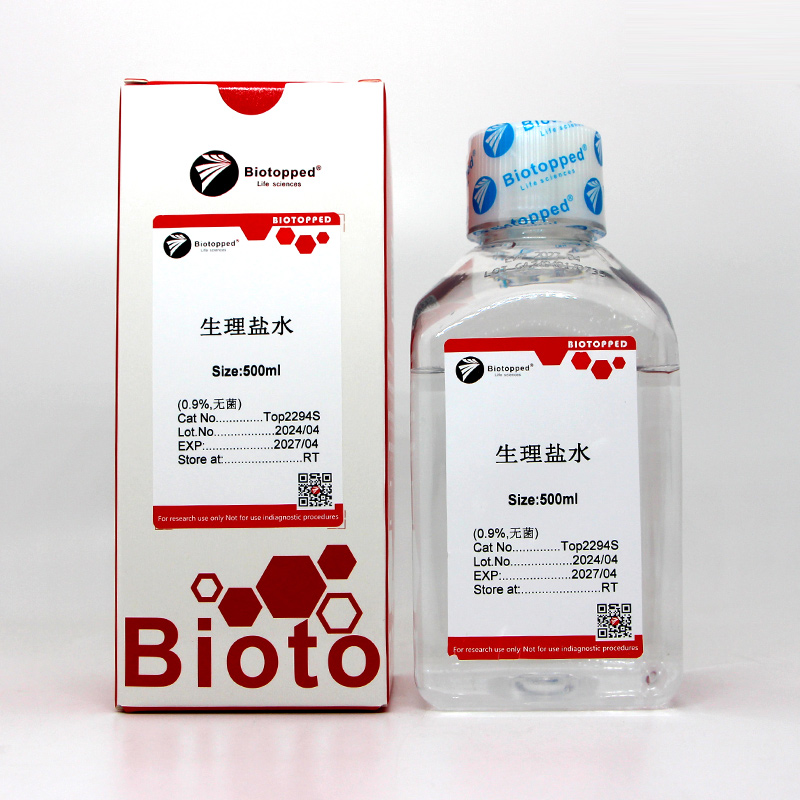 是常用的渗透压与动物或人体血浆的渗透压基本相等的氯化钠水溶液,可用于多种生理学实验,是常用的溶剂之一。0.9%生理盐水为哺乳类常用浓度; 0.85%生理盐水为常规实验常用浓度; 0.75%生理盐水为鸟类常用浓度; 0.65%生理盐水为两栖类常用浓度。